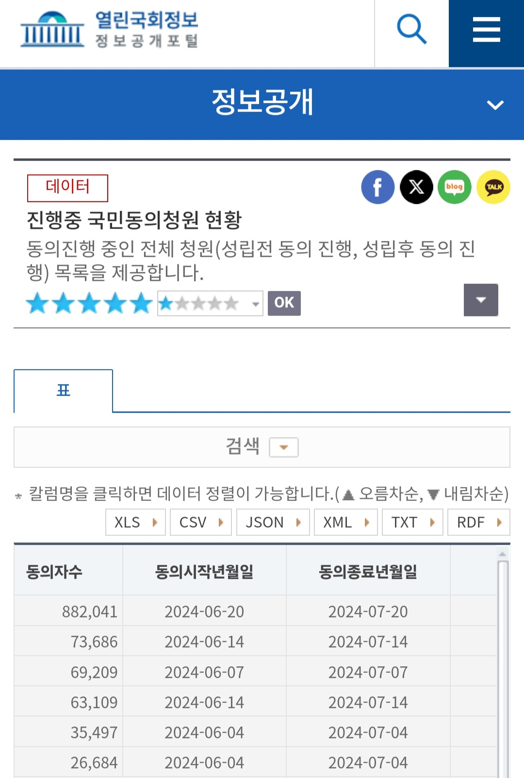 청원 현황 실시간 확인